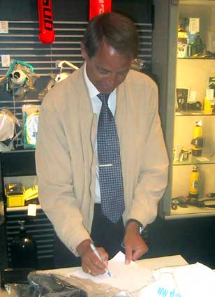 tilstede ved lodtrækningen. Preben signerer udskriften af den heldige