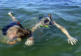 par svømmefødder og en maske så kan der gå timer i en svømmehal